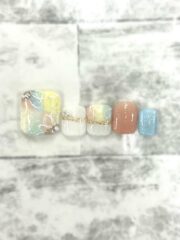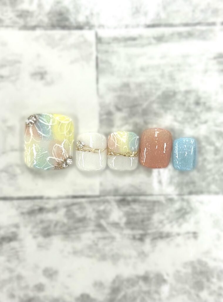 鮮やかなニュアンスネイル🎀 カラーを何色か使い可愛さをだし、落ち着いたデザインで派手過ぎなく、バラ